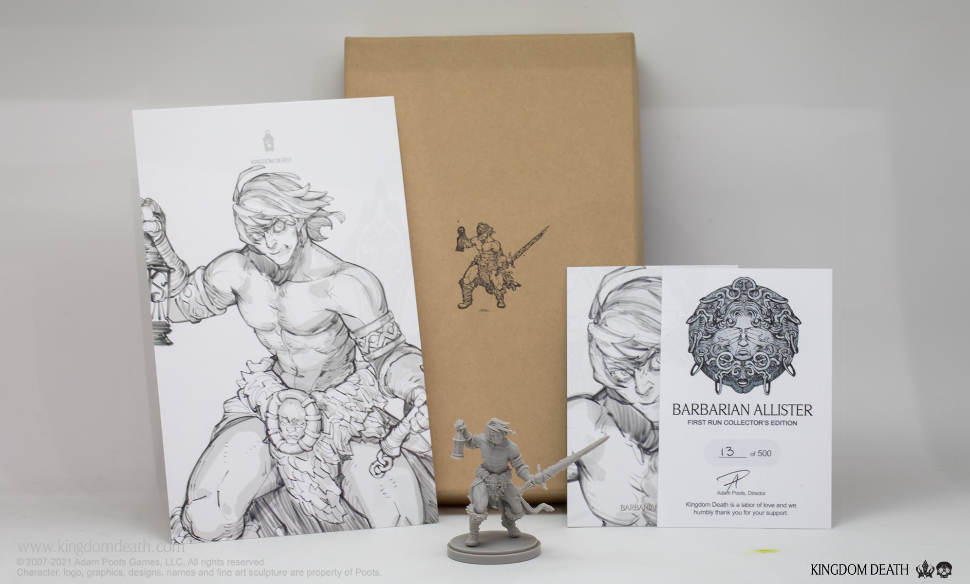 Barbarian Allister is enclosed in a hand-stamped kraft box, limited to 500 and includes: