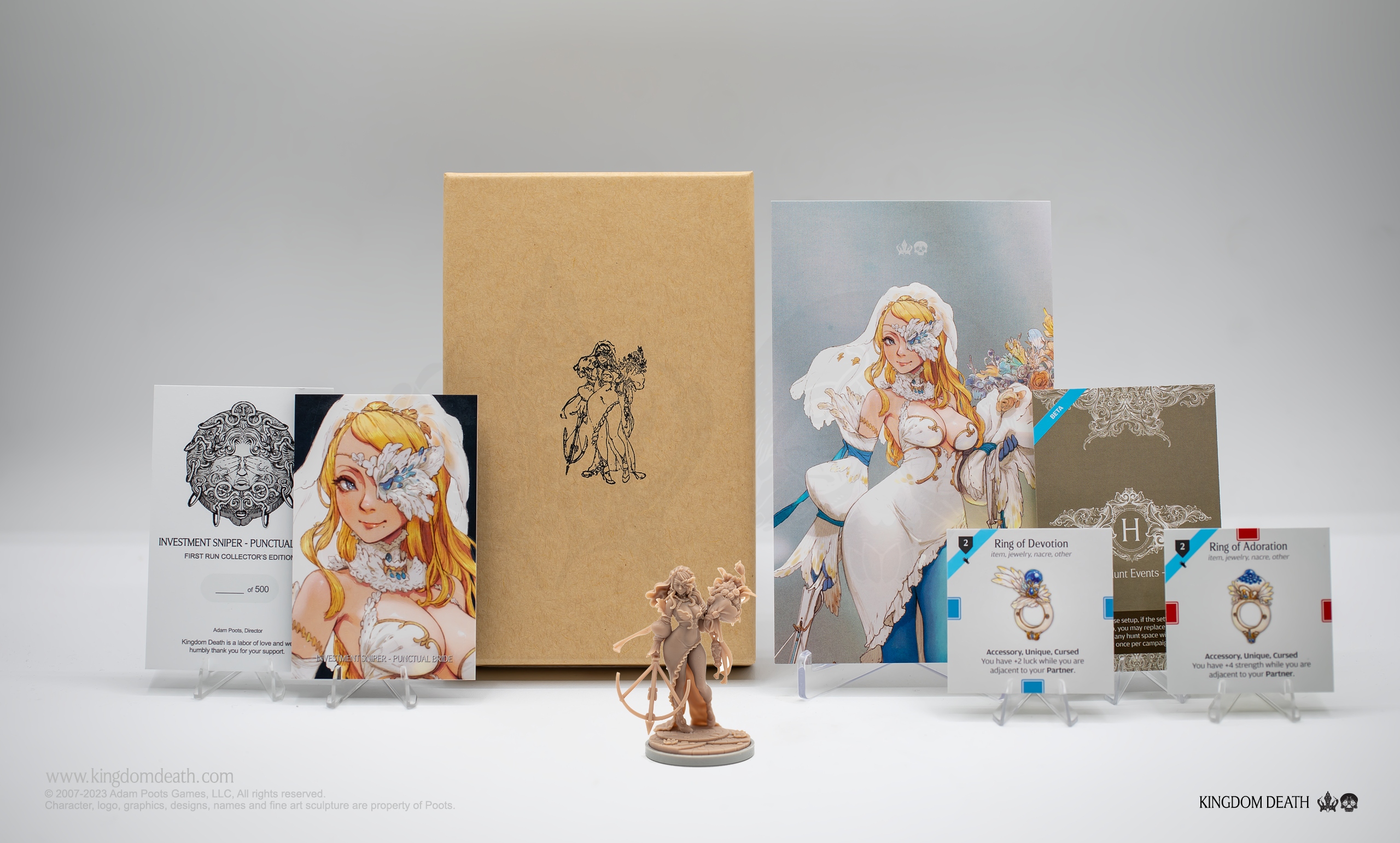 Investment Sniper - Punctual Bride is packaged in a decorative skull and crown box and includes:
